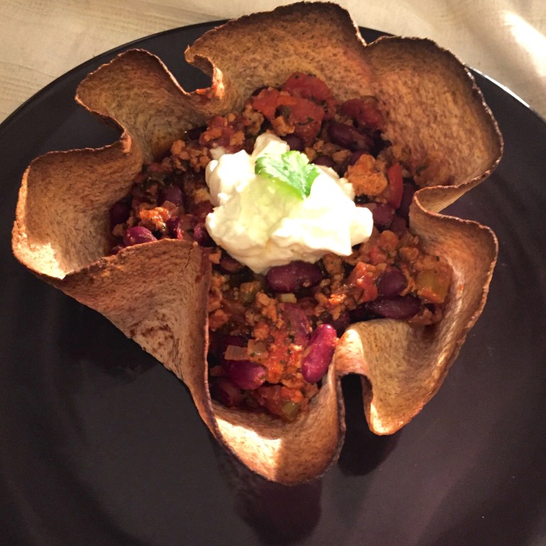 Often when I make my chilli, I chuck in some red lentils and other pulses to make more portions, and to make it a little more filling. It freezes really well, which makes it one of my favourite post training meals, as all I need to do is shove it in the microwave. One of my fave things to serve it with is a homemade taco bowl or nachos. Both are so easy to do and so tasty, which is why it’s my go-to quick meal. As you can see from all my snaps, I do eat it a looot. I just really love it y’know. So here it is, my go-to chilli recipe.