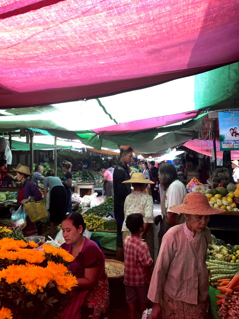 By the second day we’d felt like we’d pretty much seen most things we’d wanted to see, so we opted to visit the indoor market and brand new shopping centre (opened two days earlier), and then had a bit of a lazy afternoon before our overnight bus. That didn’t stop us from sampling some delish Burmese food that Trip Advisor had directed us to. Burmese food is known for being a bit odd. It’s kinda a cross between Thai, Vietnamese, Indian and Chinese, but with lots of emphasis on the fish sauce. This meant that pretty much all Burmese food smelt like the stuff, which to be fair wasn’t particularly appetising. However, after being handed a plethora of a menu, we pointed at some random Shan names and hoped for the best. What we received did not disappoint. Flo and I shared a Shan noodle soup, which was delish, and I got some stir fry vegetables too. At this point it had kinda becoming a running joke about how much I said “ooh it’s good to have vegetables”, but true to my word it really was! Although Burmese food is also known for being cooked in heaps of oil, it was definitely a step in the right direction.